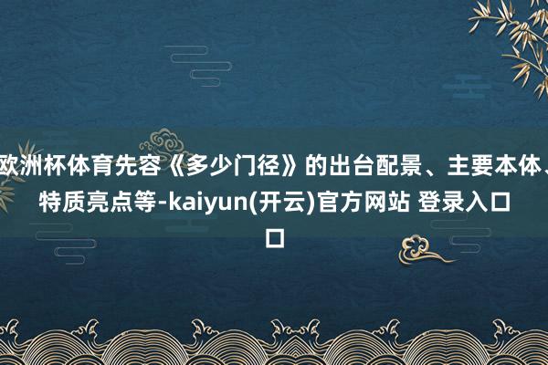 欧洲杯体育先容《多少门径》的出台配景、主要本体、特质亮点等-kaiyun(开云)官方网站 登录入口