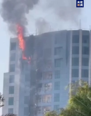 当地时分21日,伊朗南部基什岛一栋交易建立发生失火,现在火势正在向高楼层推广,消防东谈主员正在张开熄灭动作。