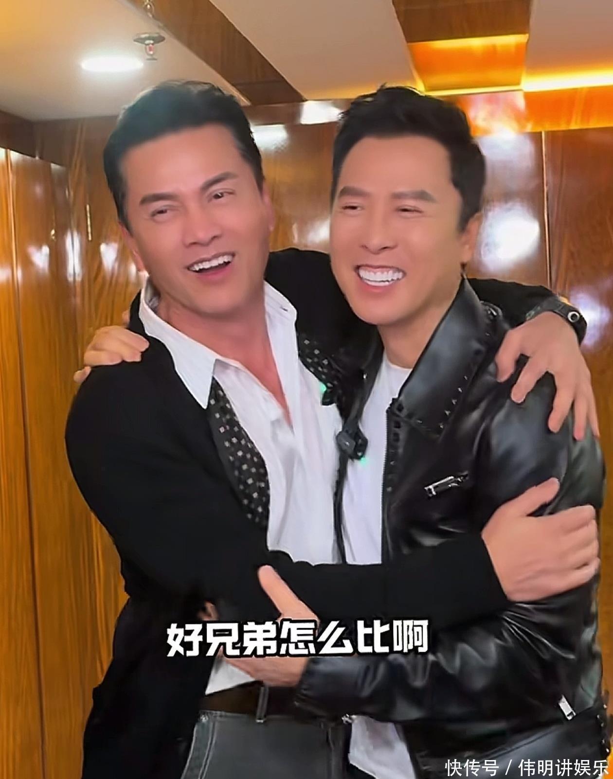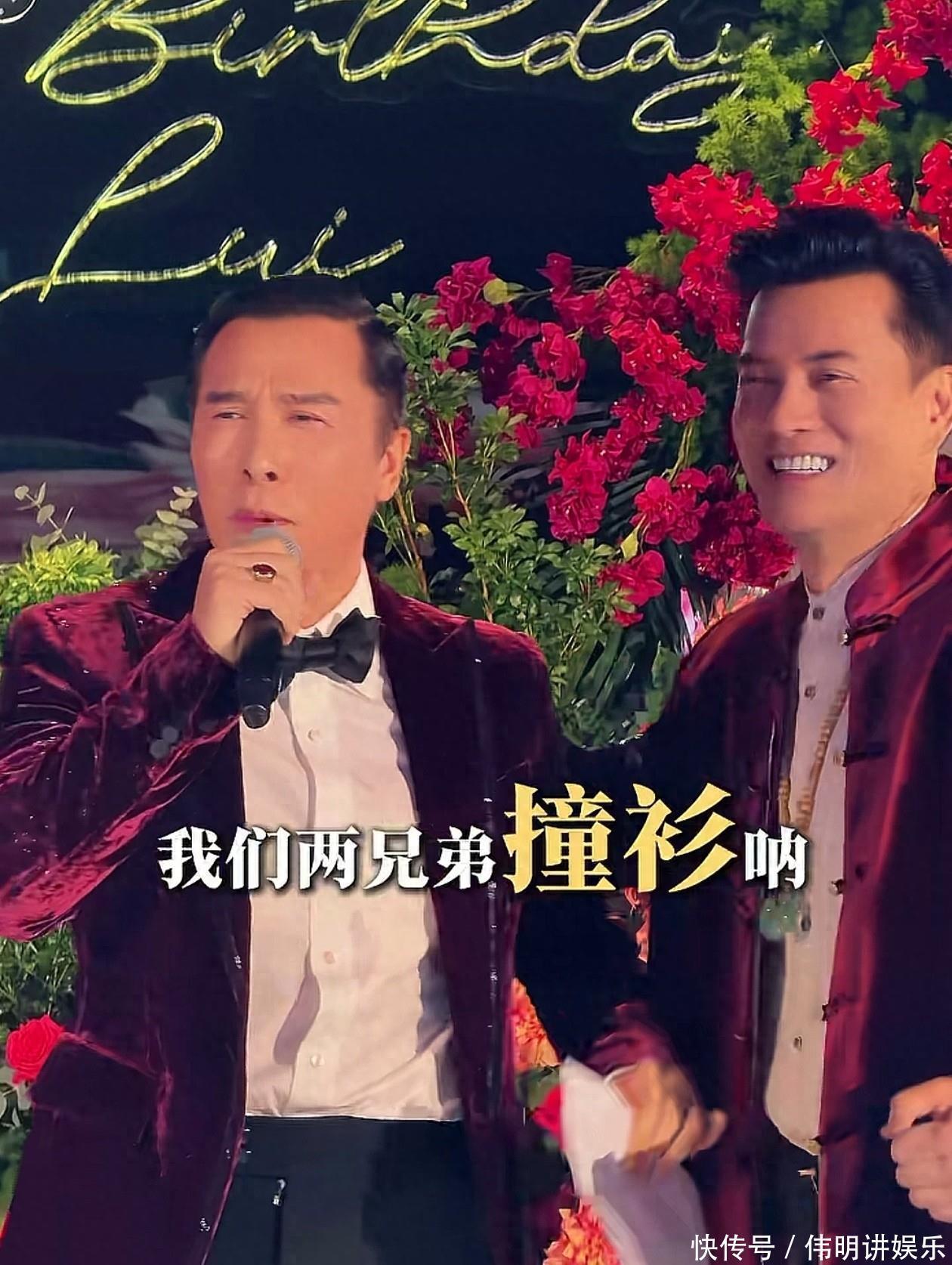 在吕良伟70大寿的生辰宴上,甄子丹上台言语。两东谈主站定,甄子丹看到两东谈主王人是穿戴深褐色外衣时,开打趣的说谈:“咱们两昆季撞衫了。这即是心有灵犀吧,没听他(吕良伟)提前讲过,发挥咱们竟然真友谊、真昆季了。”