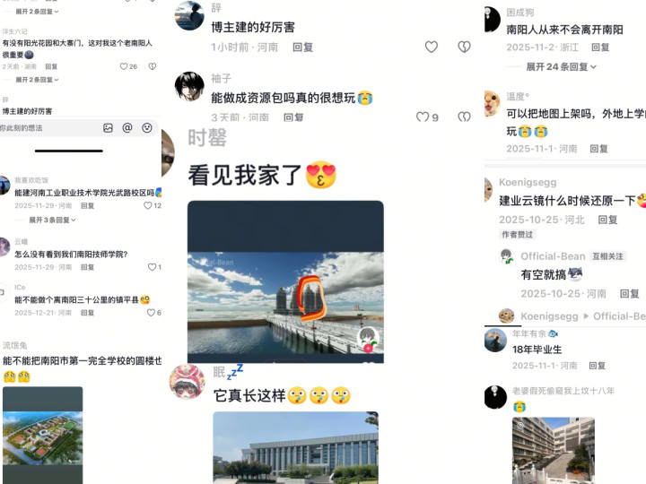 在抖音博主@Offical-Bean发布的方块宇宙视频下,评述区成为了南阳游子们交付乡愁的“归处”。2026年1月3日,大河报·豫视频记者采访到了这位低调的创作家@Offical-Bean——一位18岁的南阳在校大学生,看他如何用三年课余时代,在《我的宇宙》里一砖一瓦,为家乡打造着一份私有的“数字归档”,建成了这座让多量东谈主泪贪图“像素南阳”。