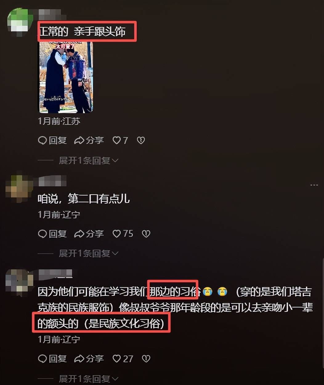 官方账号明确示意两东谈主的举动仅仅塔吉克族的贴面礼。