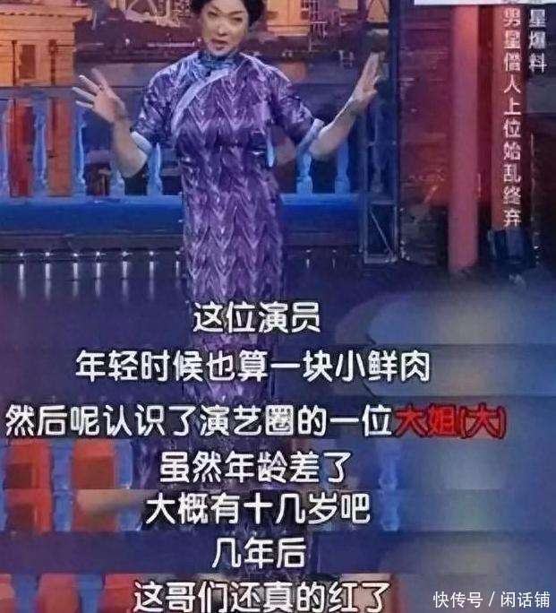在综艺《金星秀》中,主抓东说念主曾揭露文娱圈的乱象。其中提到一位男明星借一位大姐大的力上位,这男明星年青时是小鲜肉,惟恐结子了实力女演员。在小鲜肉演艺说念路迷濛时,女演员凭借自己资源帮他结子好多导演,让他有契机出演不少好变装。