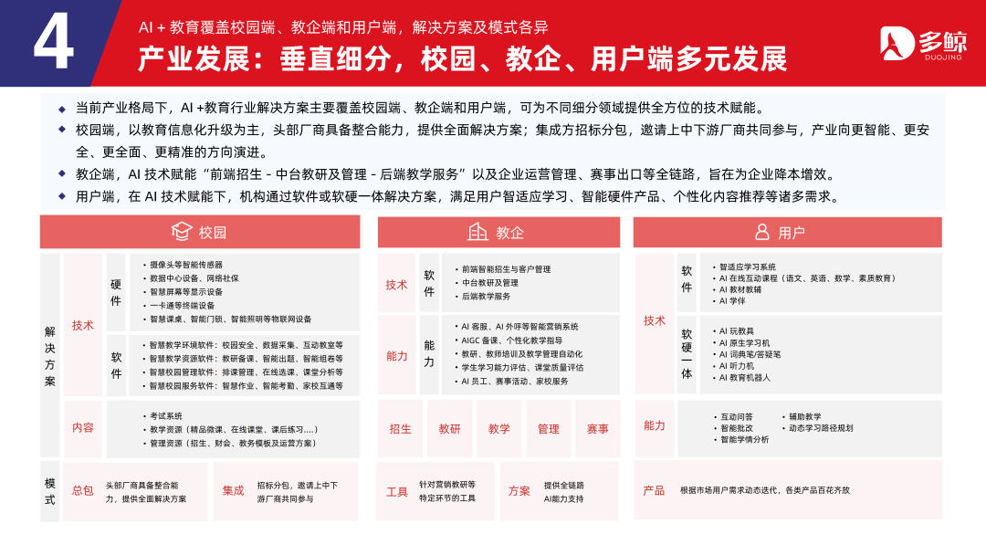 AI+缓助隐蔽校园端、教企端和用户端,处置有野心及模式互异