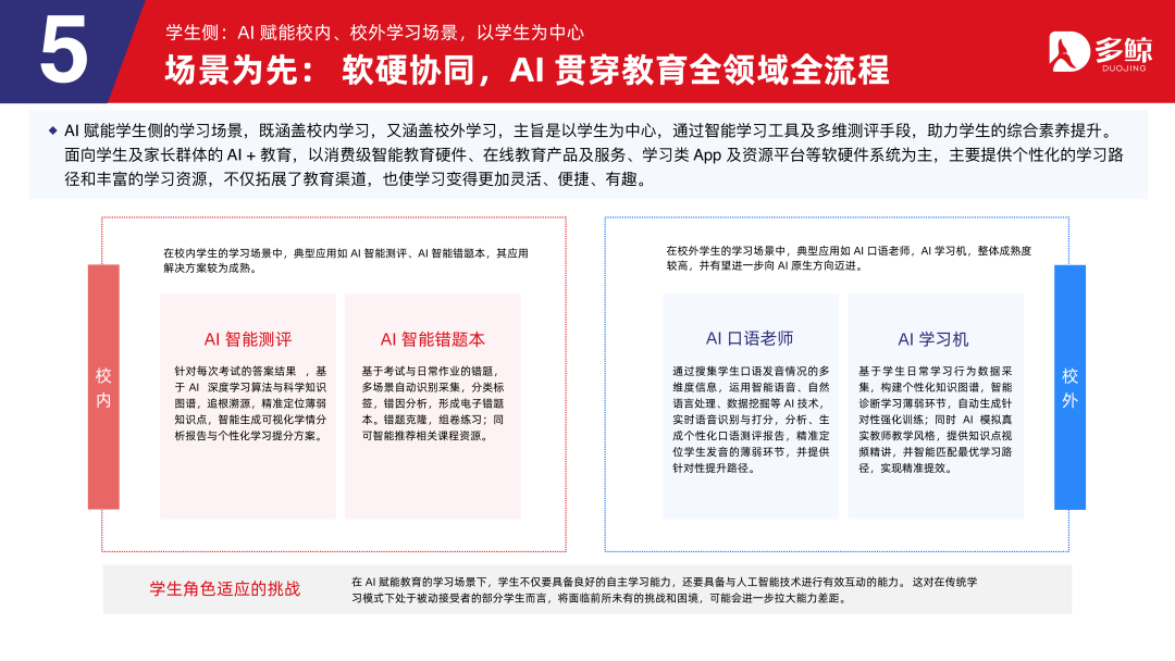学生侧:AI 赋能校内、校外学习场景,以学生为中心