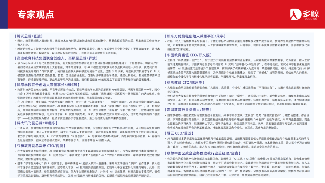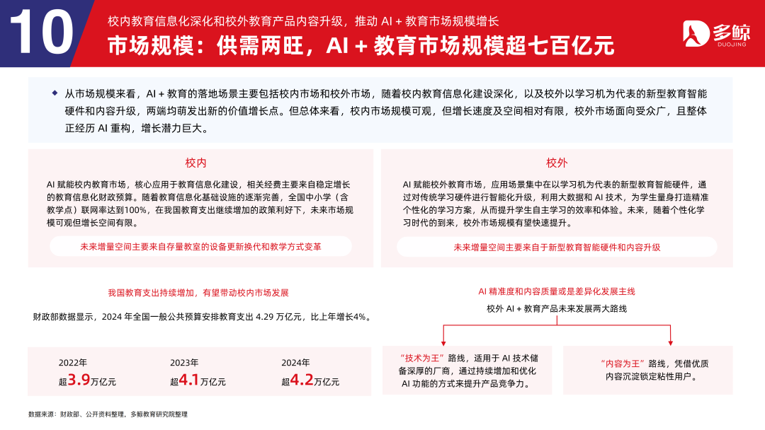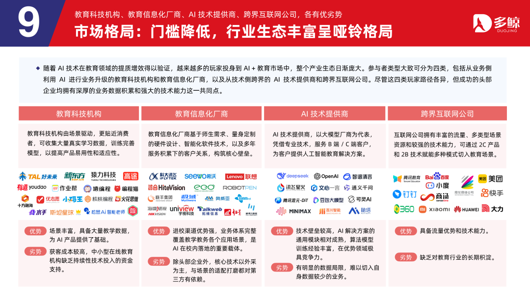 跟着算力成本的下跌和最初大模子的开源,AI+缓助的时刻门槛将大幅镌汰,若是仅依靠算力和模子,将进入同质化竞争,企业间难以构建护城河。畴前,AI+缓助畛域的竞争重点如故缓助本人,对缓助的理会、缓助数据的规模以及生态协同将成为拉开家具及服务差距的枢纽点。关于企业而言,用好时刻,练好内功,推动缓助向育东谈主本色的深度精致仍是核心。