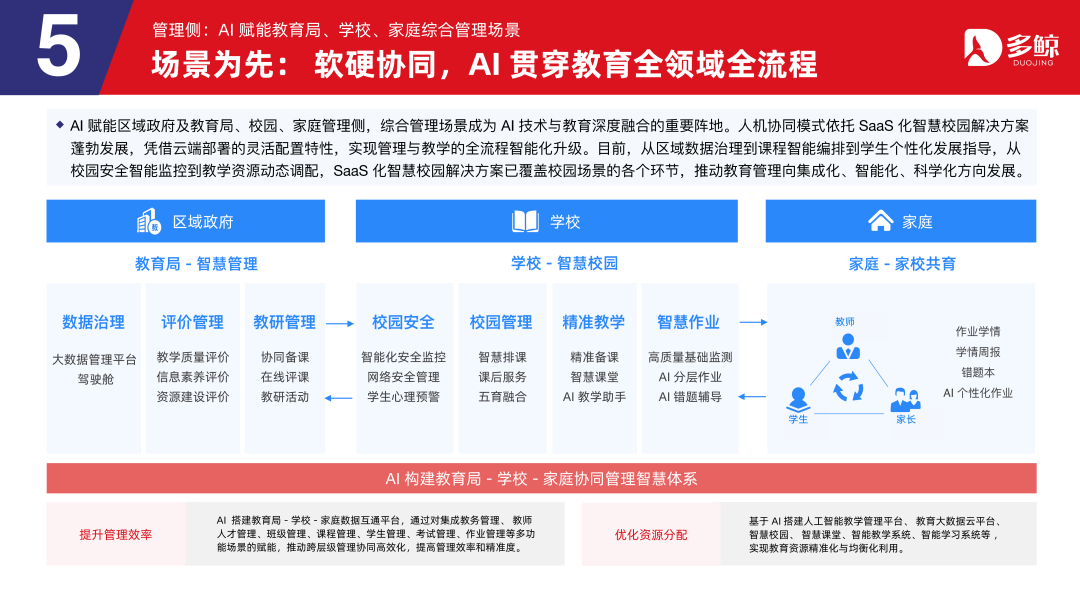 AI 赋能区域政府及缓助局、校园、家庭治理侧,抽象治理场景成为 AI 时刻与缓助深度交融的进犯阵脚。东谈主机协同模式依托 SaaS 化颖悟校园处置有野心茂密发展,凭借云霄部署的无邪成就脾气,已毕治理与教学的全历程智能化升级。目下,从区域数据治理到课程智能编排到学生个性化发展带领,从校园安全智能监控到教学资源动态调配,SaaS 化颖悟校园处置有野心已隐蔽校园场景的各个格式,推动缓助治理向集成化、智能化、科学化标的发展。