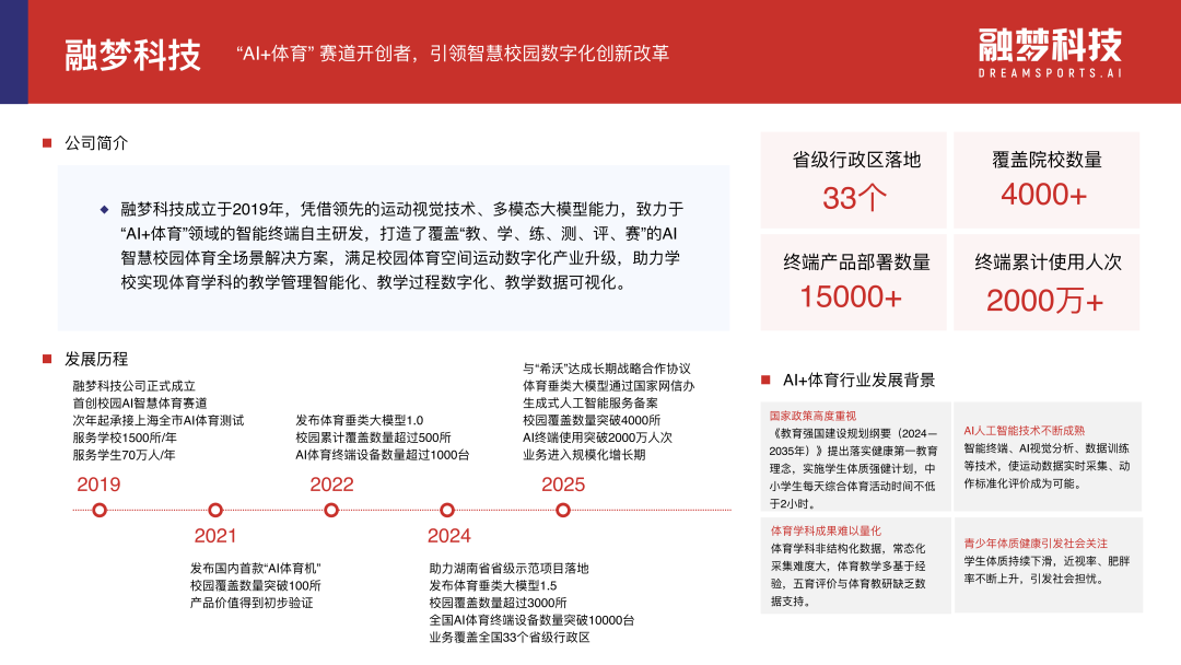 融梦科技 — AI+体育驱动颖悟校园,打造教会测评赛全场景数字化