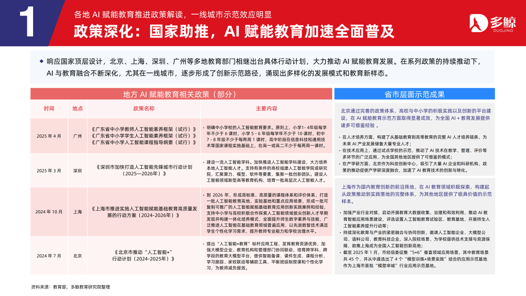 响应国度顶层遐想,北京、上海、深圳、广州等多地缓助部门接踵出台具体活动野心,荒诞推动 AI 赋能缓助发展。在系列政策的执续推动下,AI 与缓助交融不停深化,尤其在一线城市,迟缓酿成了创新示范旅途,显表露种种化的发展模式和缓助新样态。
