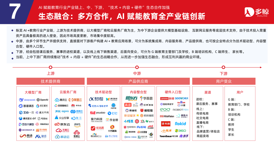 下流,经由包括课后服务、赛事的进校渠谈,以及线上线下销售渠谈,后头向受众,可分为 G 端缓助主宰部门及学校,B 端培训机构,C 端师生、家长等。