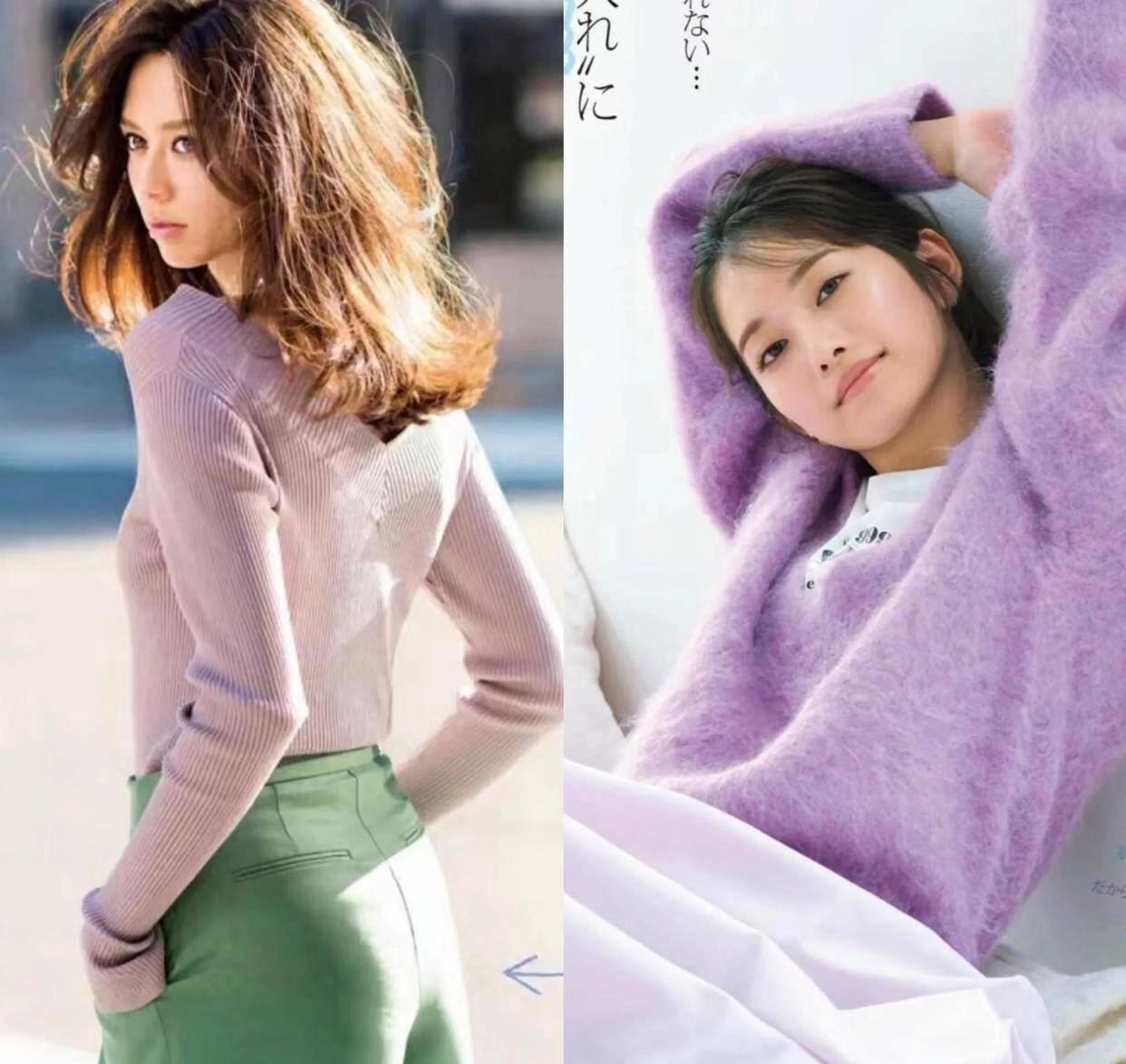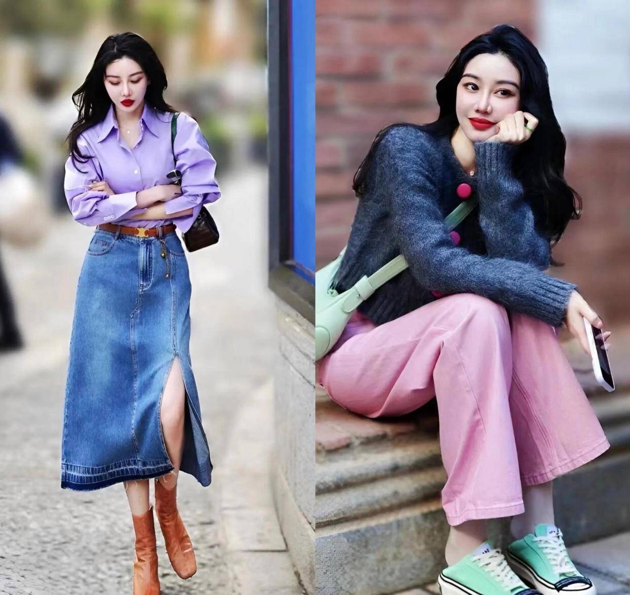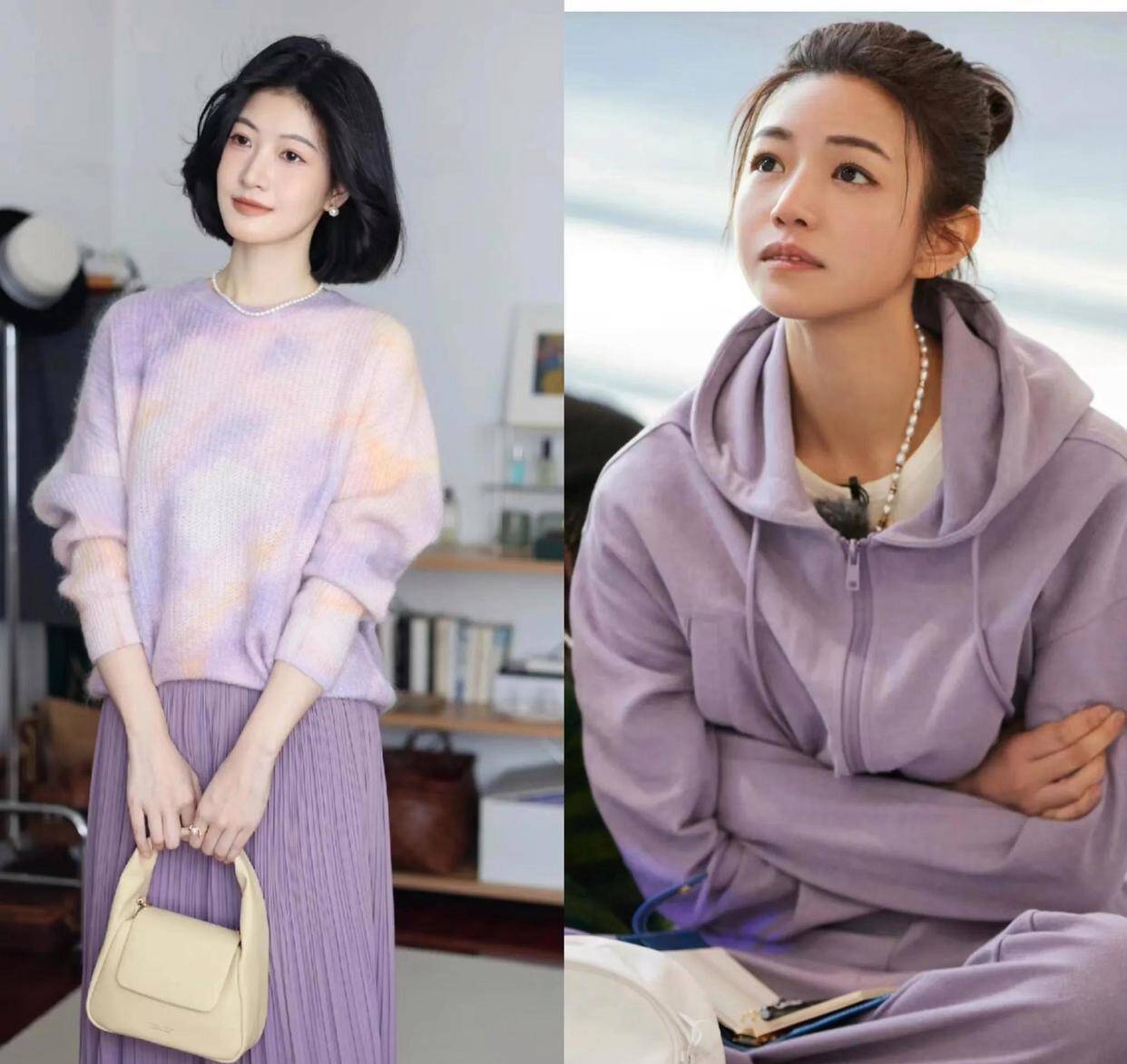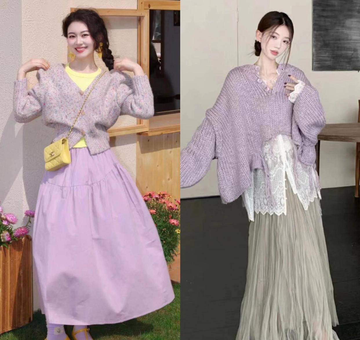 番红色的渐变毛衣,搭配了紫色的半裙,配色属于同色系,又有着浅深的变化,给一种温婉优雅的气质,又显得知性高档,很稳健熟悉一些的女生,独特有女东谈主味,减龄后果也可以。