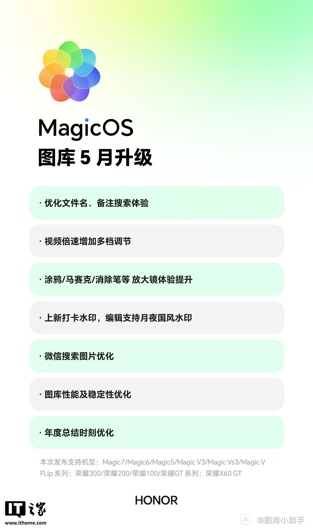 IT之家附荣耀 MagicOS 图库 5 月升级坚信如下: